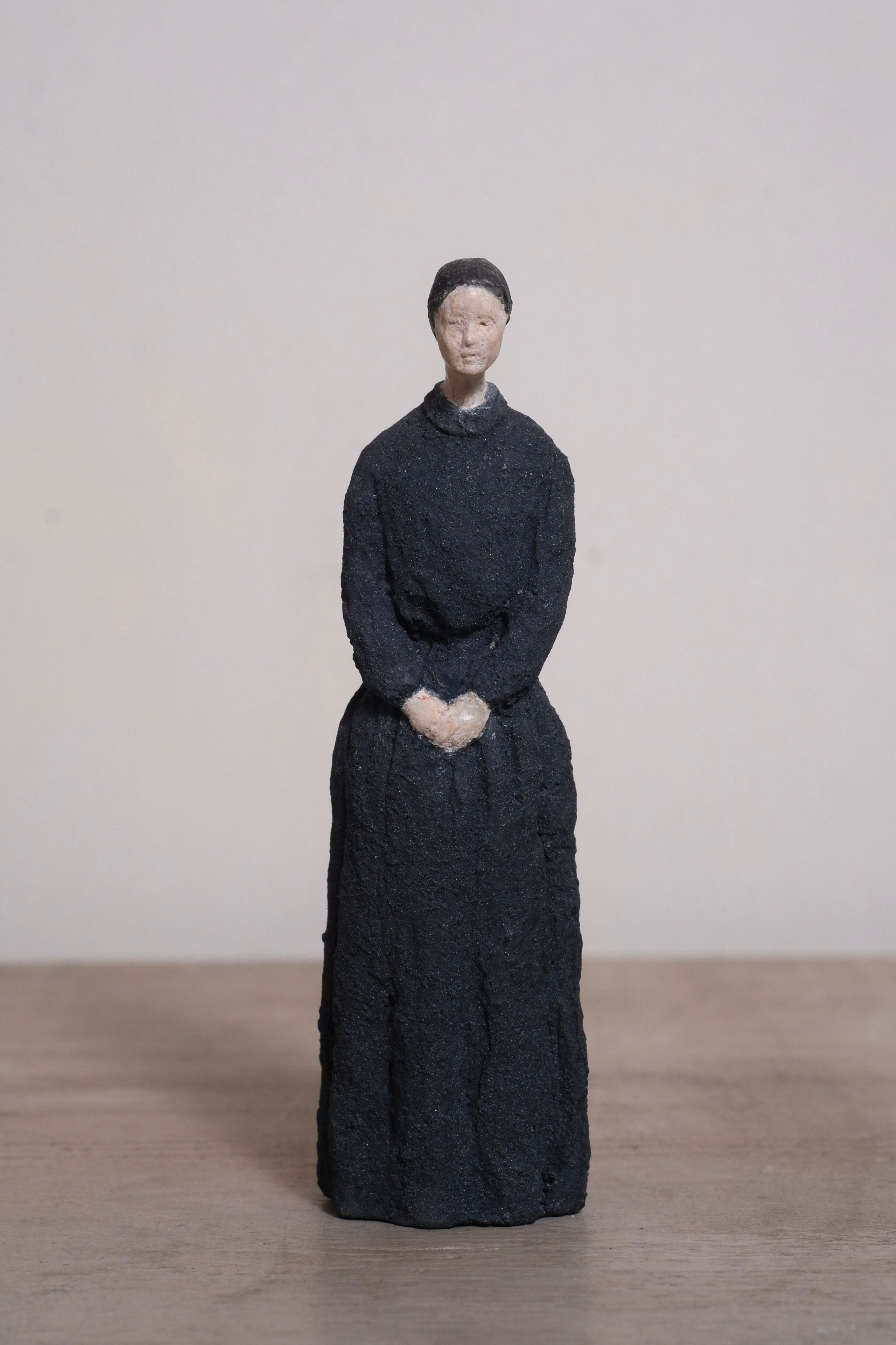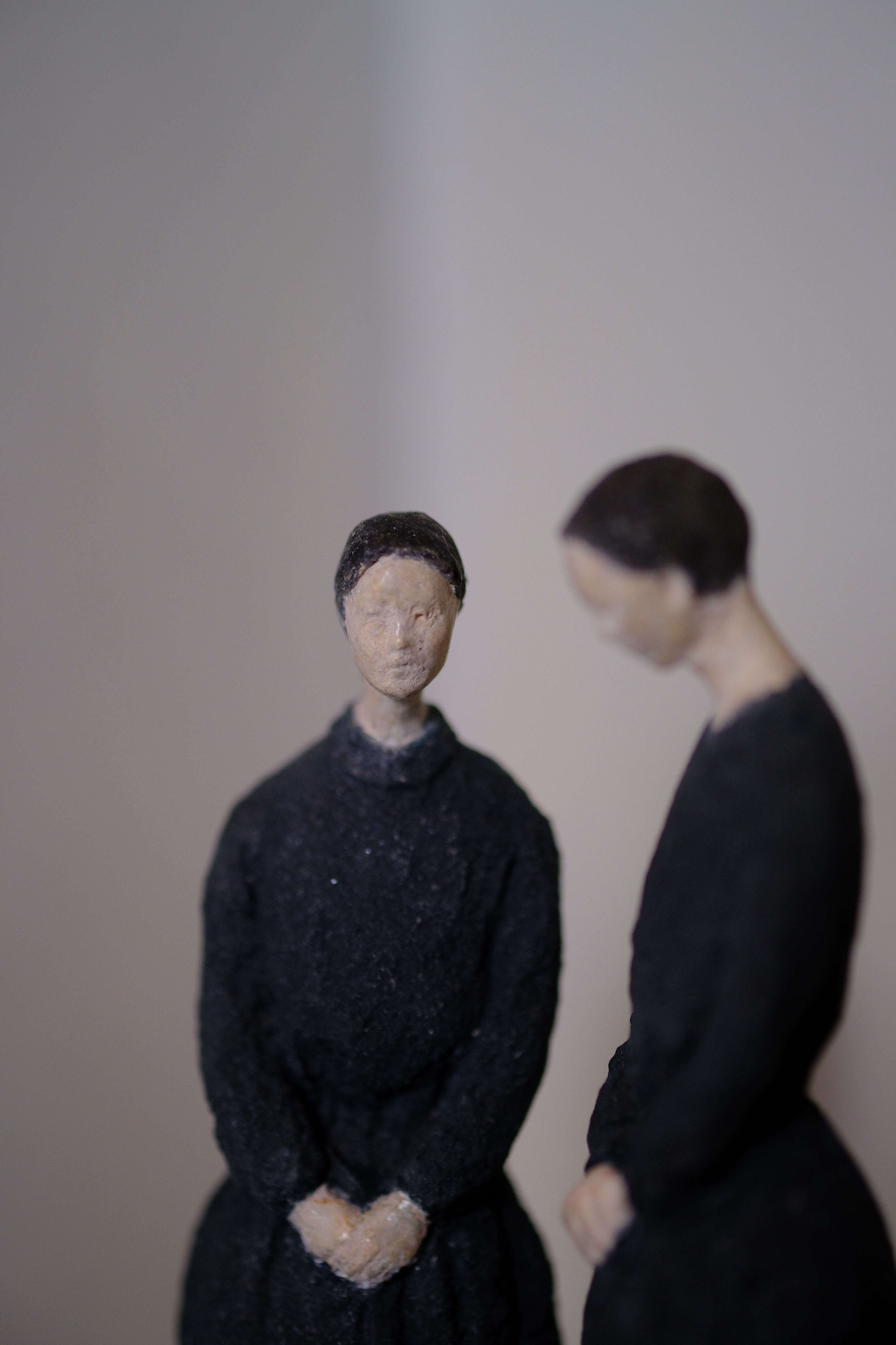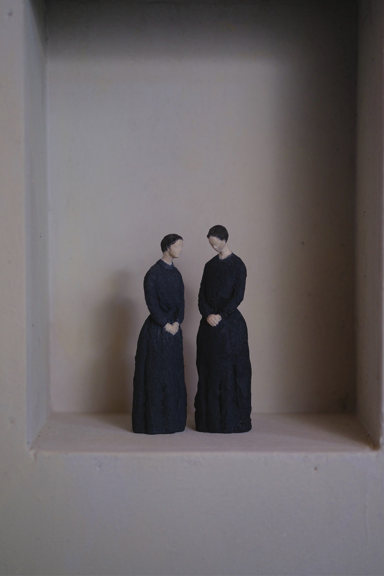 For the areas of the face and skin, a large amount of plaster was mixed in, applied in layers, and then polished, resulting in an uneven gloss.
