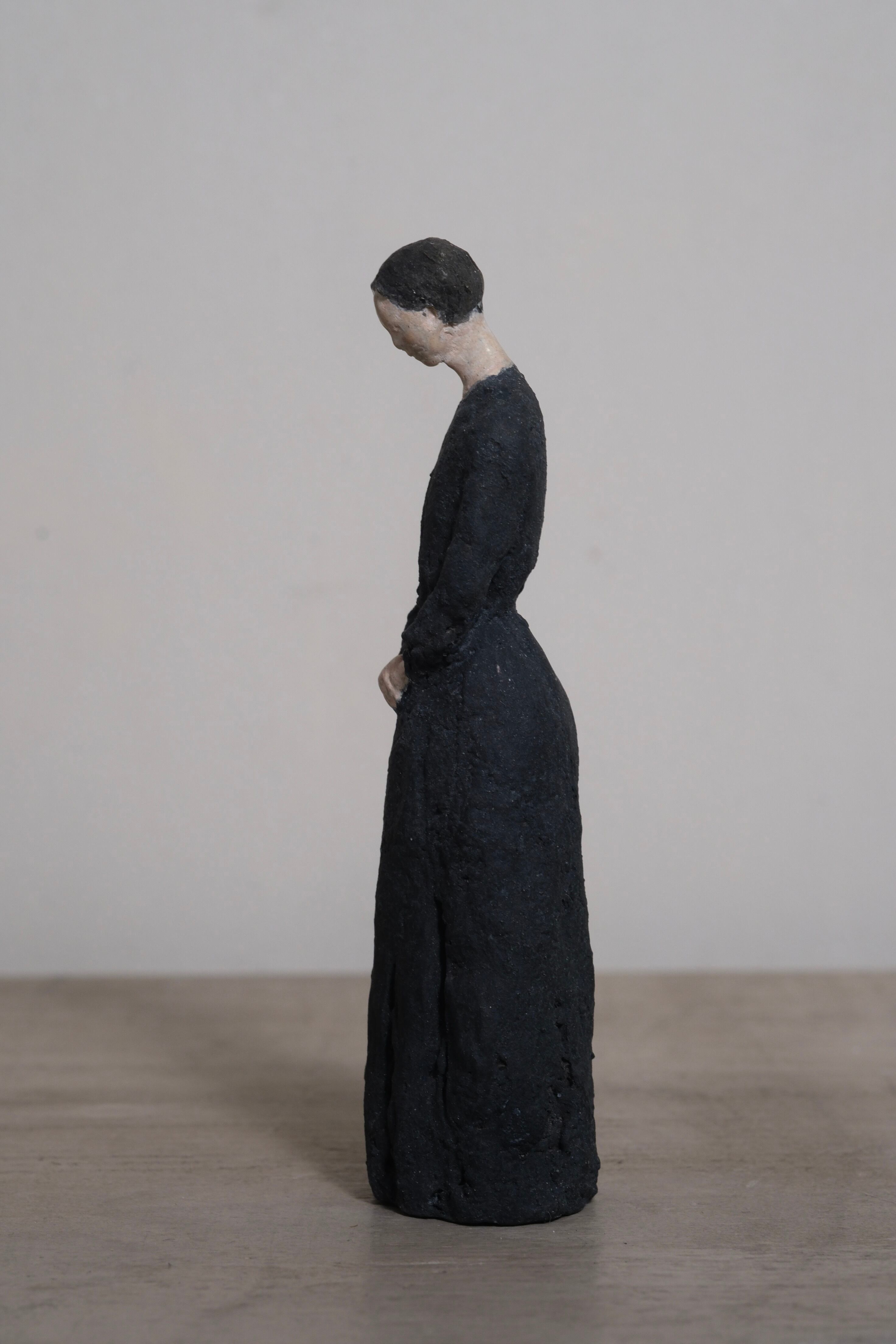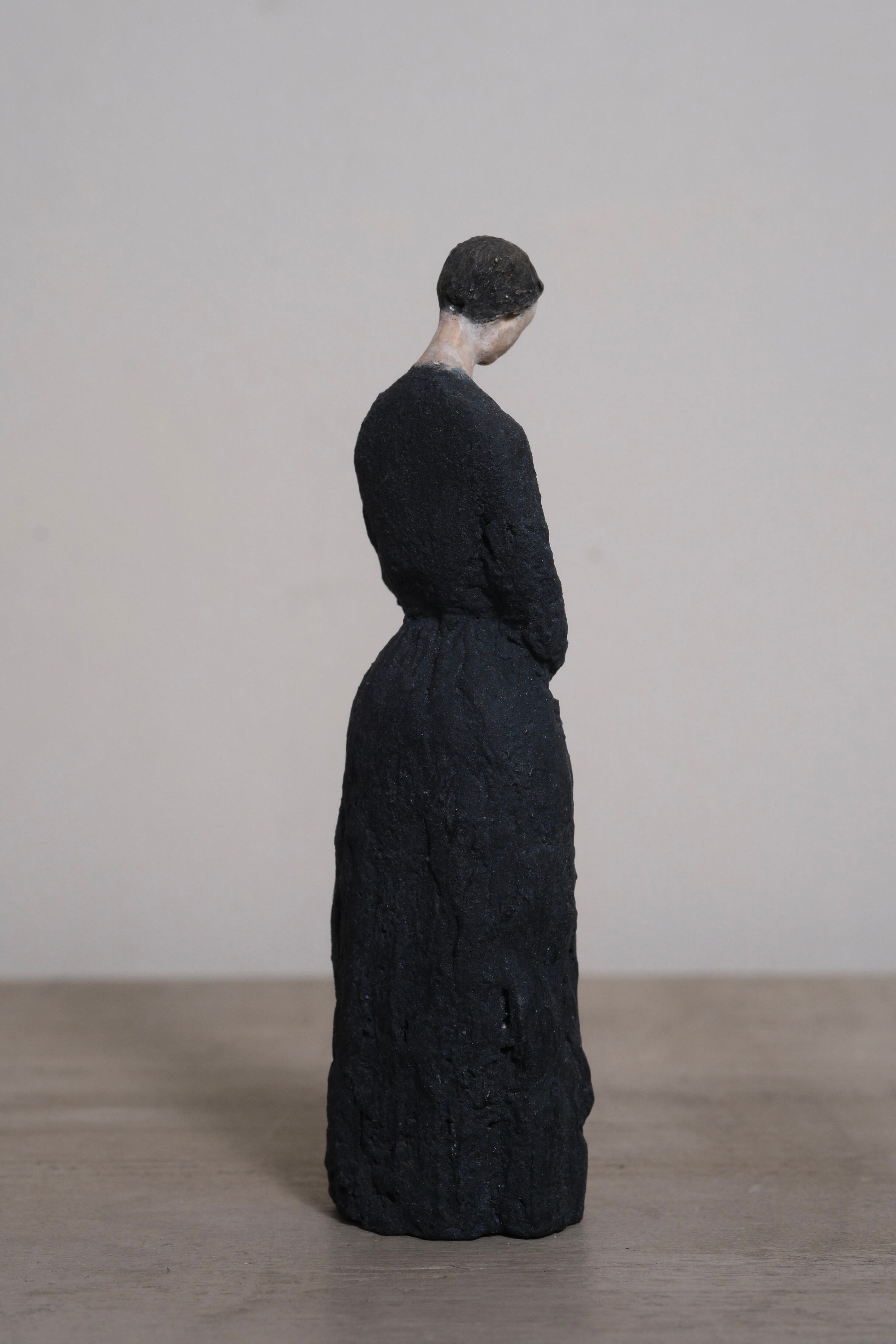 For the areas of the face and skin, a large amount of plaster was mixed in, applied in layers, and then polished, resulting in an uneven gloss.