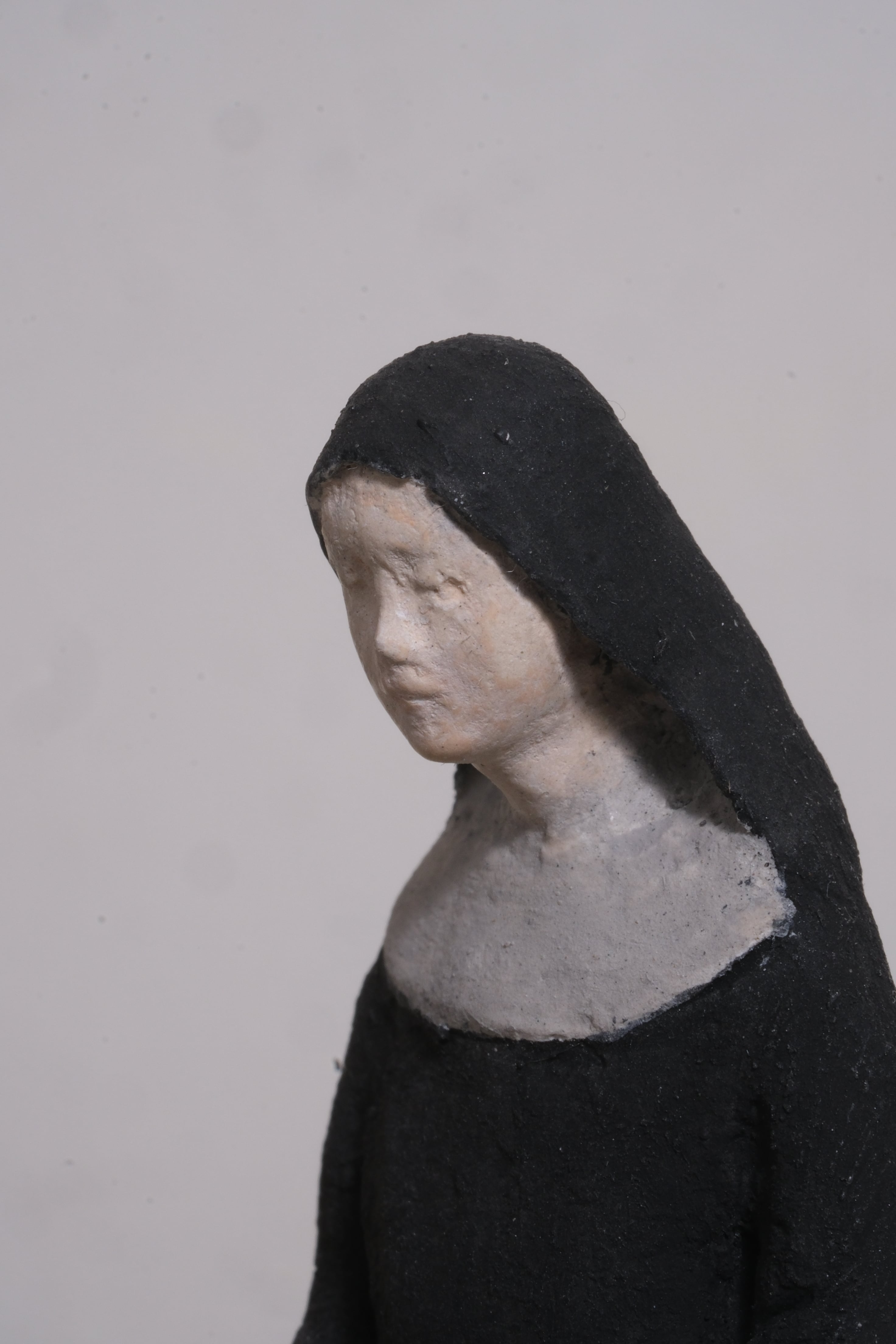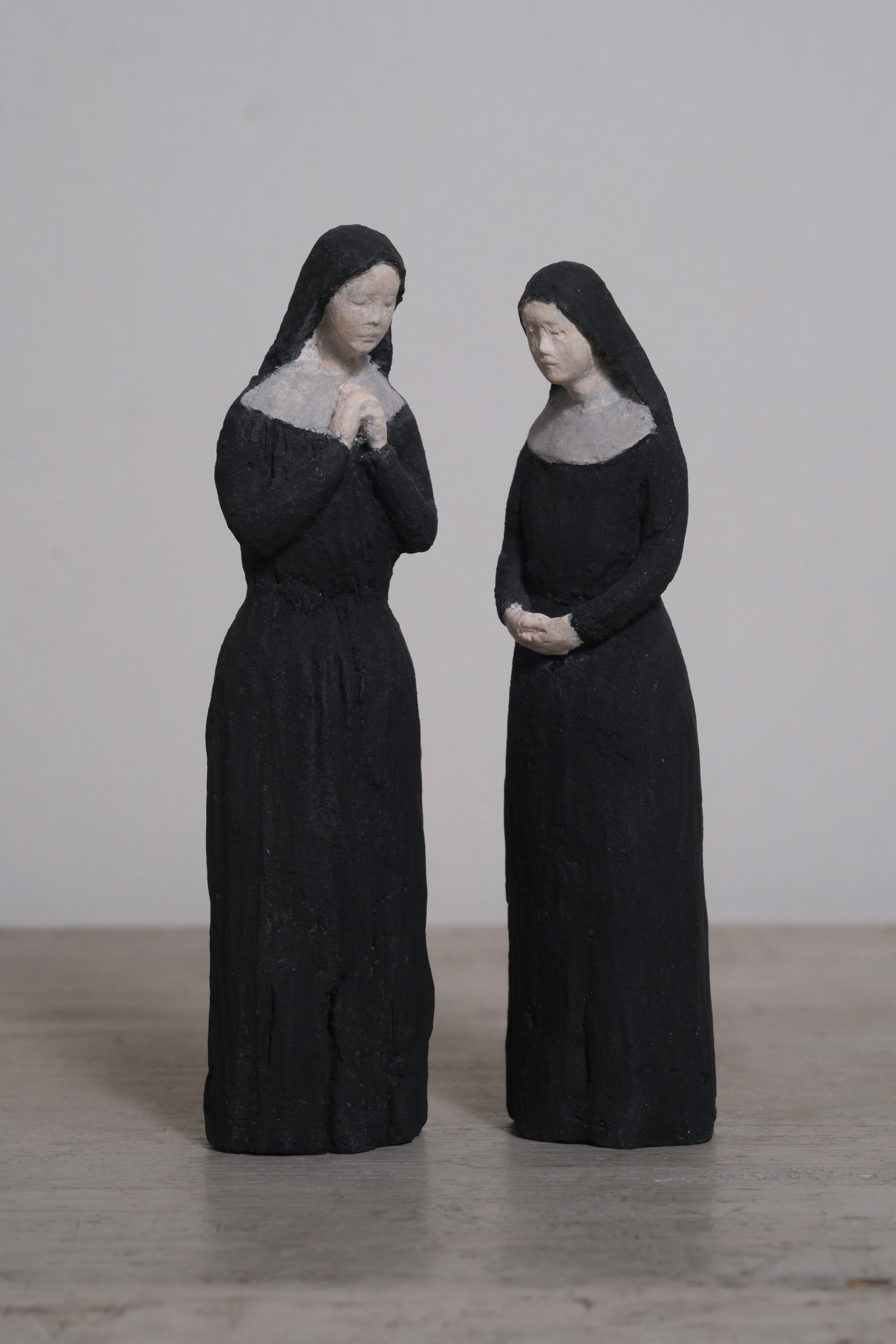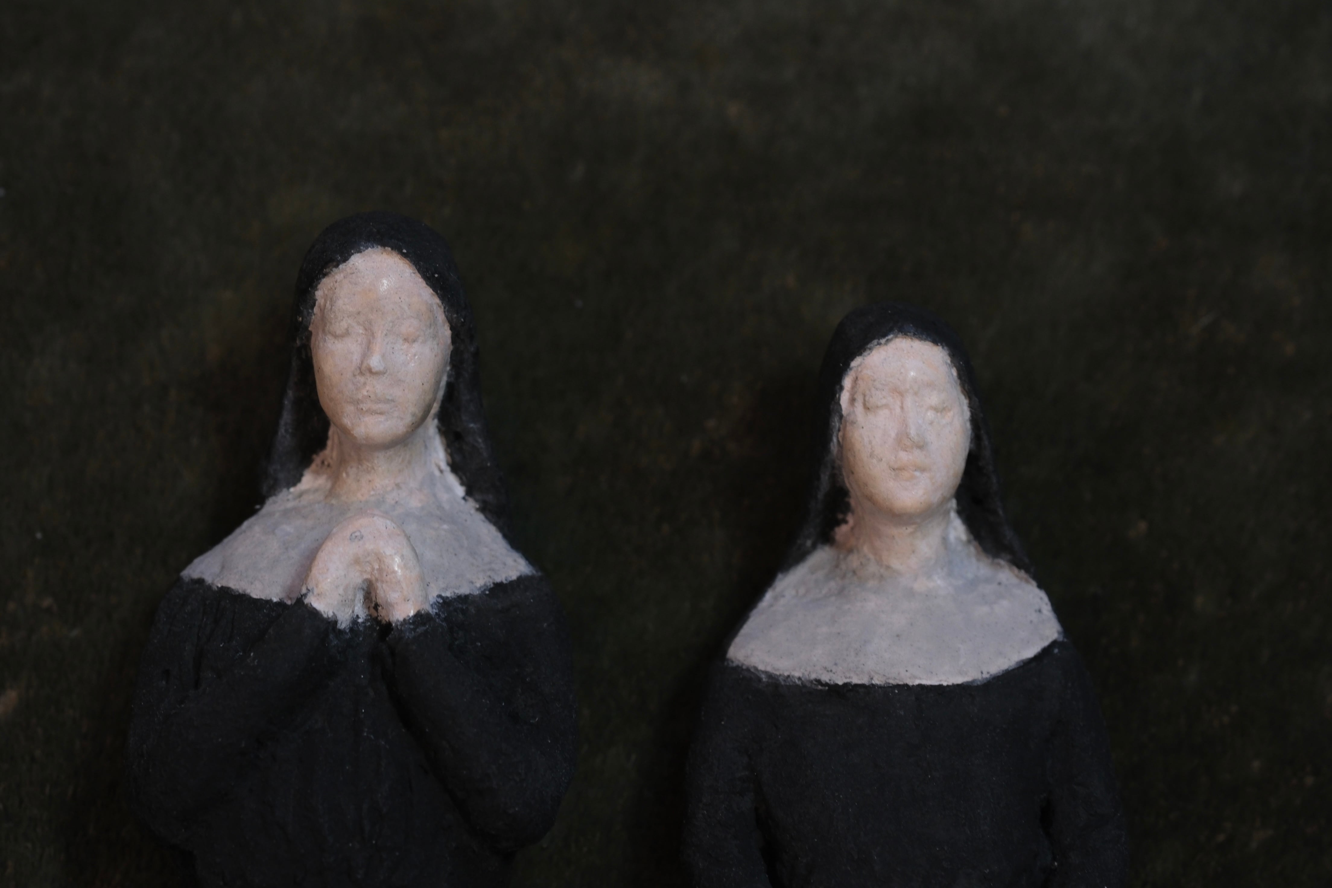 優しく祈る像を作りたいと思い、今回個展では修道女姉妹を制作しました。